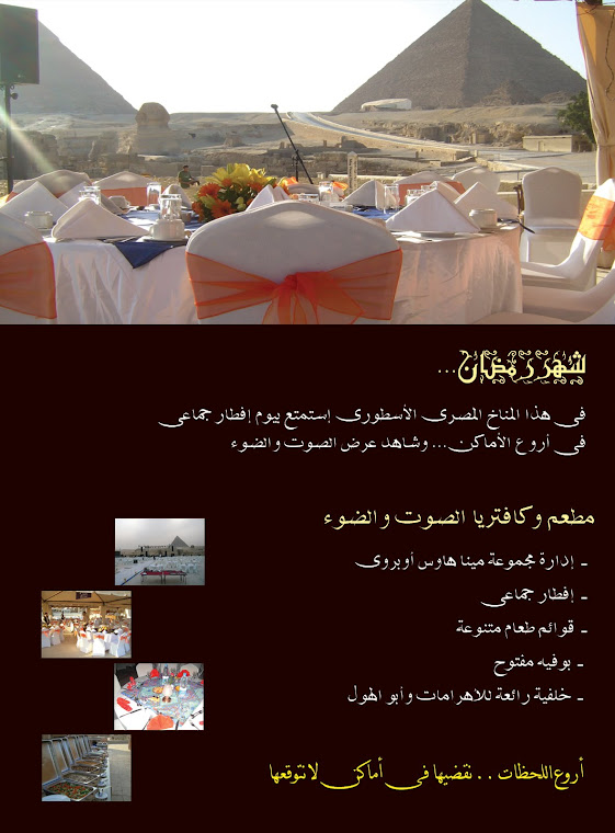 - العرض الخاص ليس اجبارى ولكنة اختيارى لمن يرغب فى مشاهدة عرض الصوت والضوء بالاهرامات حيث انة يمكنكم المشاركة بحجز الافطار فقط ولكننا أضفنا عرض الصوت والضوء لزيادة الاستمتاع لدى السادة الحضور